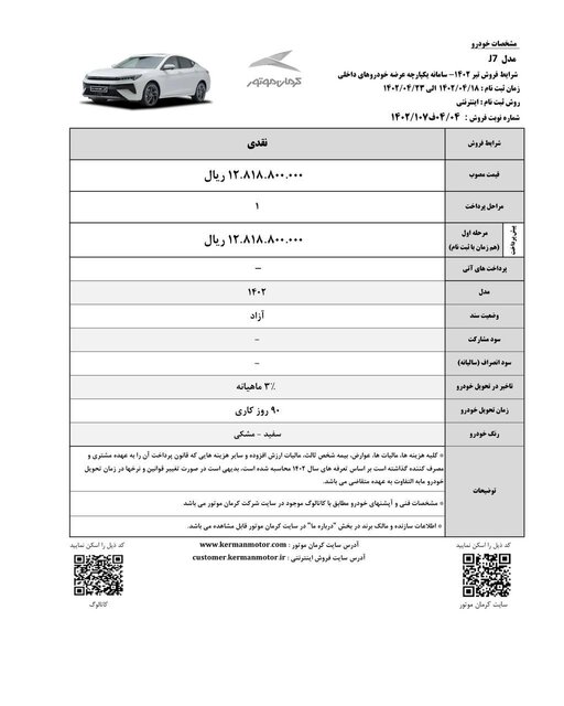 گفتنی است که شرکت کرمانموتور برای محصول جک J۴ اتوماتیک، امکان خرید بصورت اقساطی را هم فراهم کرده است.