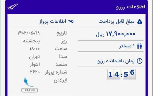 سقف نرخ بلیت این مسیر طبق آخرین اعلام سازمان هواپیمایی حدود یک میلیون و ۳۲۶ هزار تومان است
