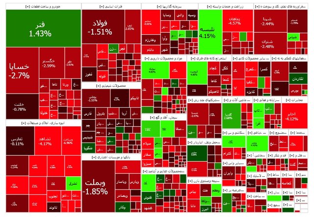 فولاد، شپنا، شتران و وبملت بیشترین تاثیر منفی را بر شاخص کل داشتند. همچنین وبملت، داتام، فولاد و شستا از نمادهای پرتراکنش بودند که همگی منفی شدند.