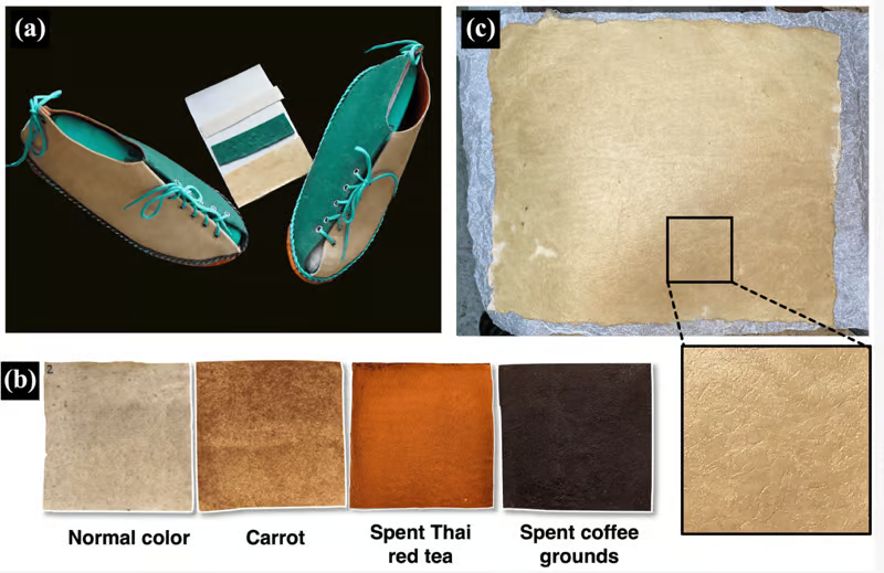 وقتی این چرم با استفاده از میکروسکوپ الکترونی بررسی شد، ساختاری داشت که بهترین عملکرد را در آزمونهای مقاومت کششی و پارگی و سختی نشان داد. این ورقههای چرمی همچنین با انواع رنگهای طبیعی، از رنگ هویج گرفته تا قهوه، مورد رنگآمیزی قرار گرفتند تا نشان داده شد که چگونه میتوان بدون نیاز به مواد شیمیایی سمی مورد استفاده در دباغی تجاری، به رنگهای متنوعی دست یافت.