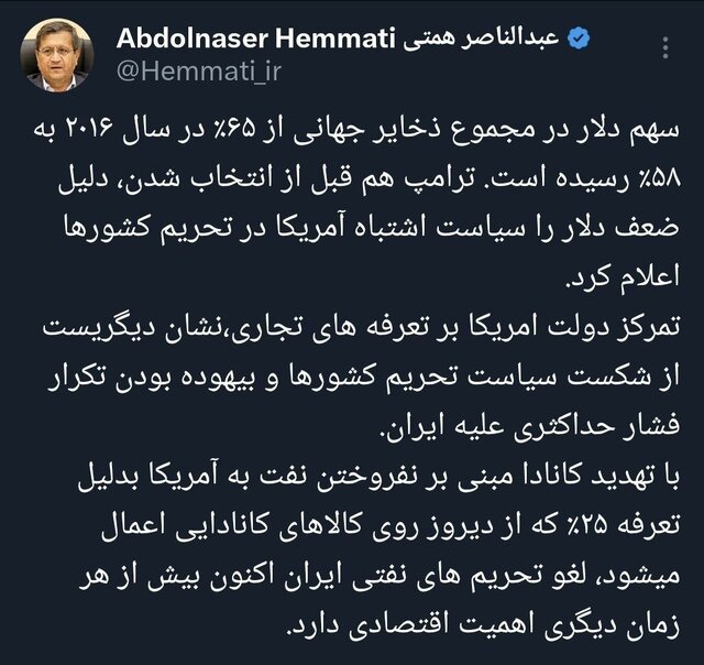 به گزارش خبرآنی، عبدالناصر همتی وزیر امور اقتصادی و دارایی در حساب کاربری خود در شبکه ایکس نوشت: لغو تحریمهای نفتی ایران اکنون بیش از هر زمان دیگری اهمیت اقتصادی دارد.